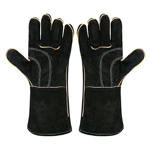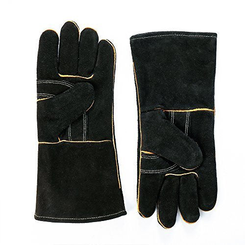 LeaSeek - Guanti in pelle per barbecue, resistenti al calore 14 inches, Black