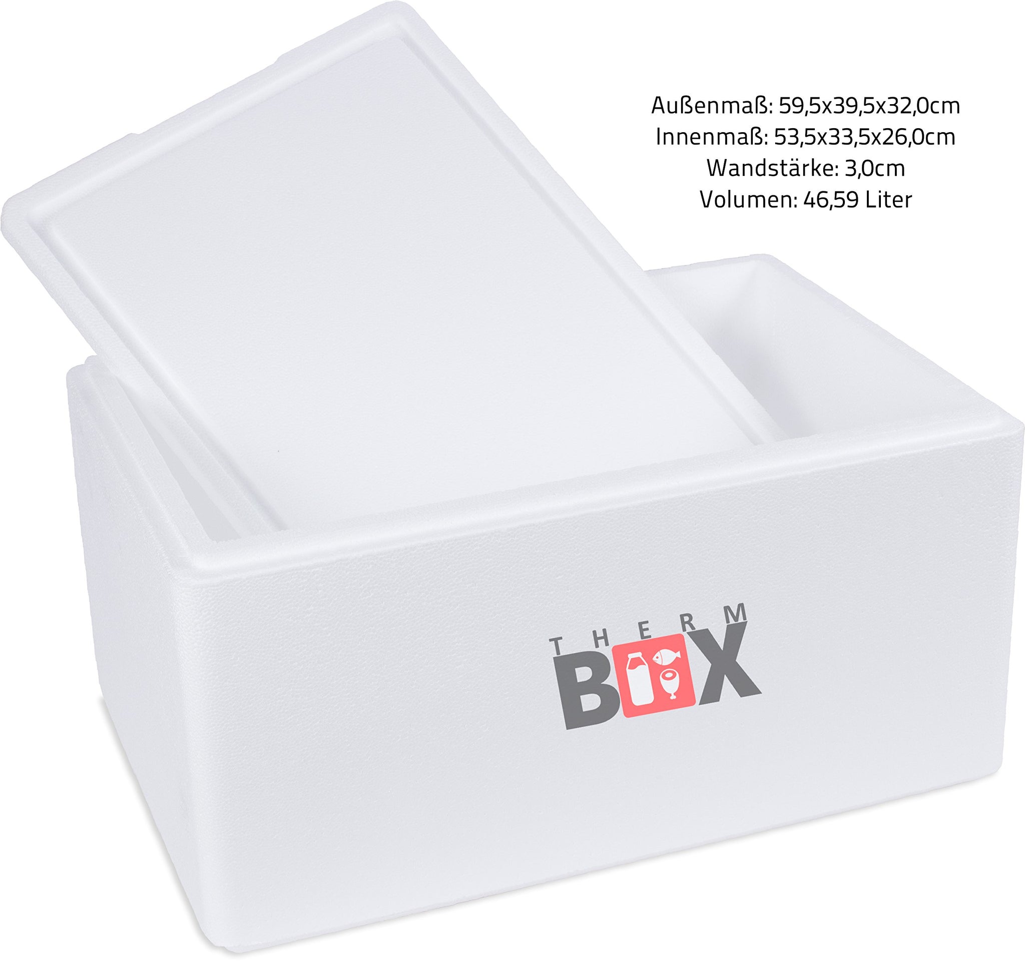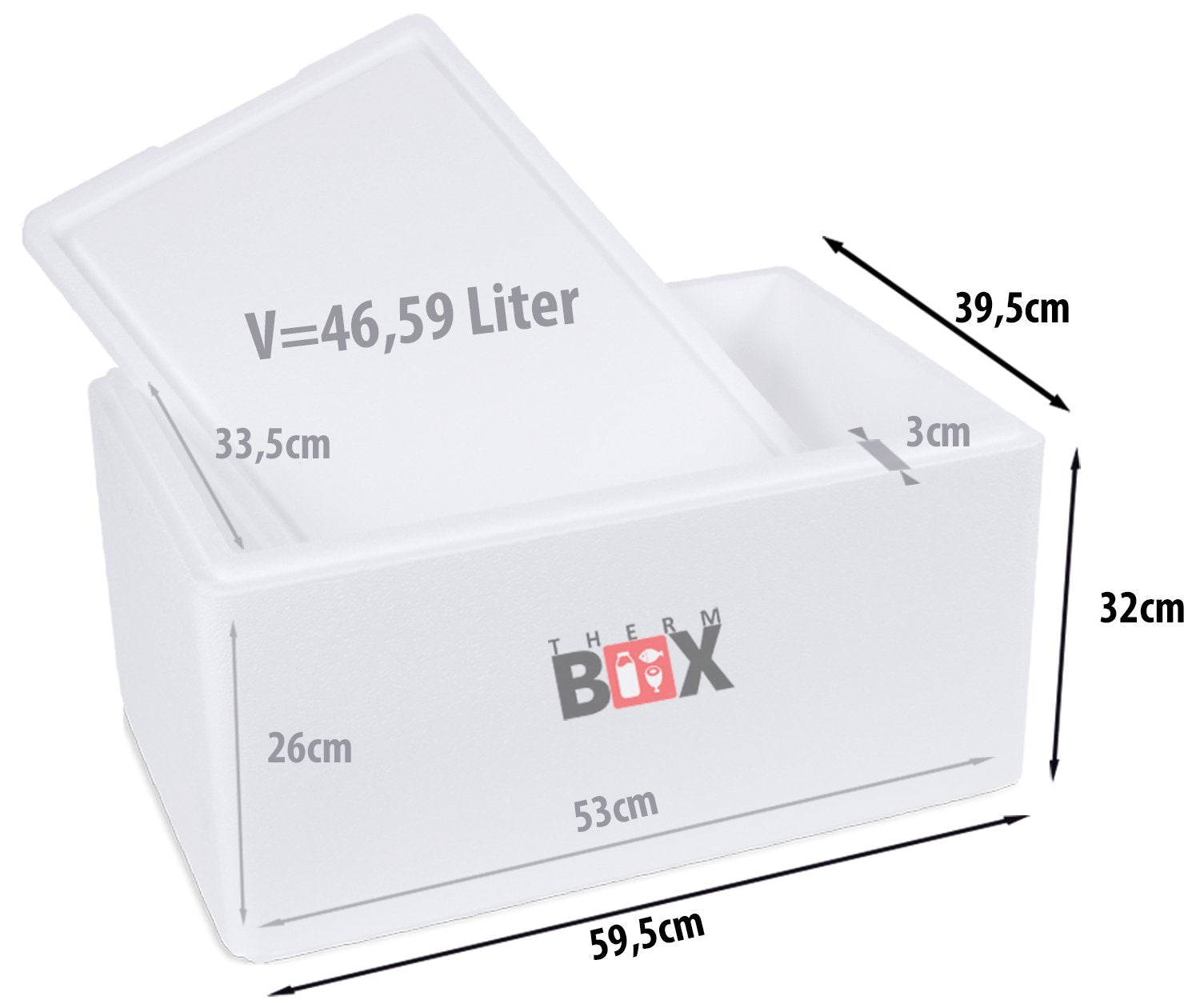 Scatola termica isolata in polistirene bianco, 59,5 x 39,5 x 32 cm, ideale come borsa frigo, 46,59 l