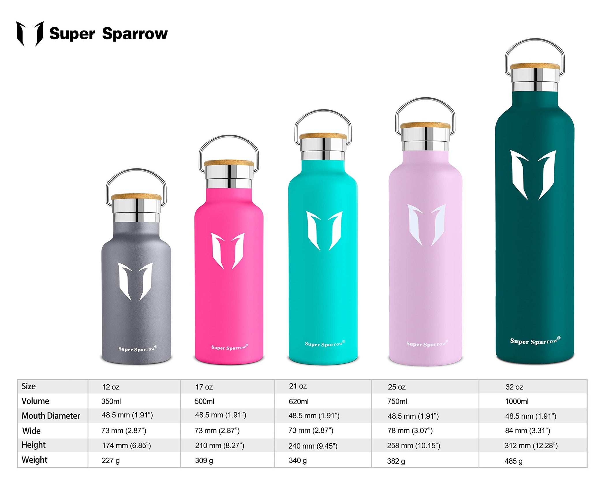 - DUREVOLE E FACILE DA USARE - A differenza di altre bottiglie d'acqua leader, Super Sparrow ha un rivestimento in polvere, che ti dà una presa solida. Il Rivestimento in Polvere funziona con l'isolamento premium, che impedisce la formazione di condensa sulla parte esterna della bottiglia, per darti esattamente quello che vuoi in un sistema di consegna di un rinfresco quotidiano.