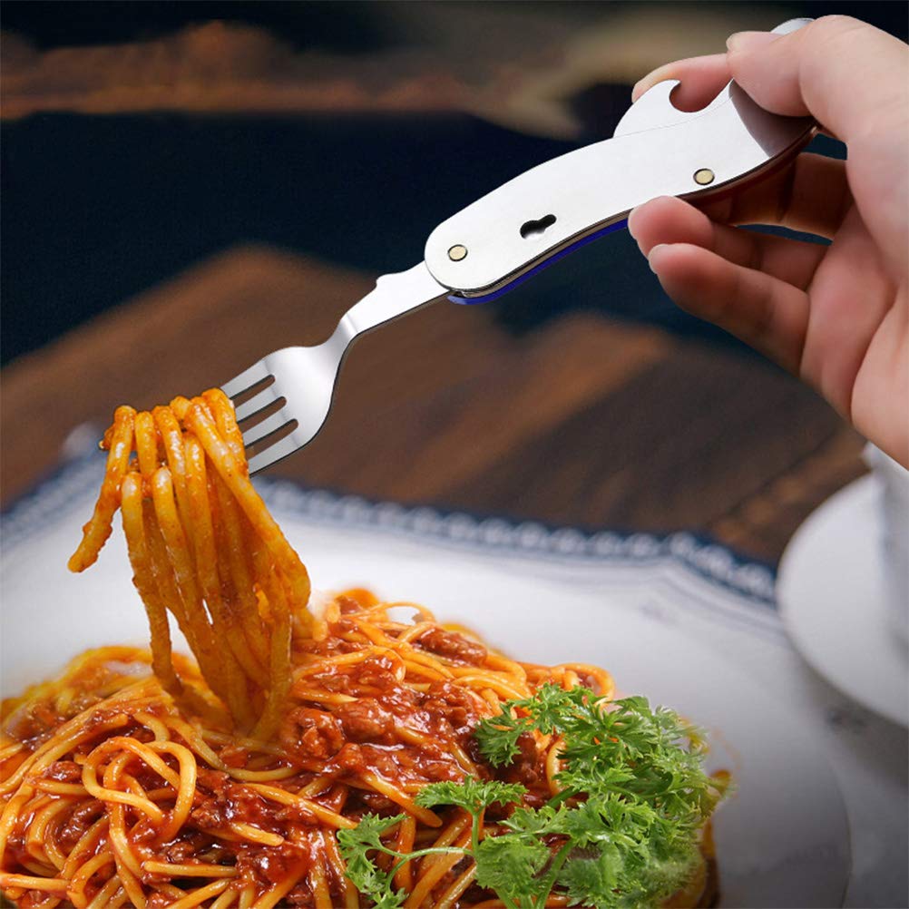 - 【Disegno perfetto】I lati delle posate pieghevoli portatile possono essere smontati, con una forchetta da un lato e un cucchiaio, un coltello e un apribottiglie dall'altro. Le maniglie degli articoli per la tavola sono progettate per essere comode, la forma è piccola e compatta e la lavorazione è raffinata, in modo che ogni acquirente non possa metterlo giù.