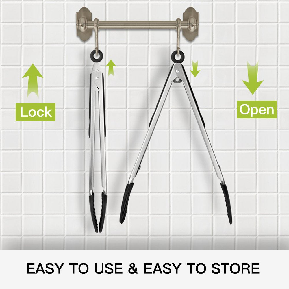 - 【DUE MISURE DISPONIBILI】: La grande pinza è da 12 pollici, la piccola è da 9 pollici, che è molto facile a afferrare e raccogliere le carni con le due diverse dimensioni. Puoi anche usarli per vari tipi di cose: cubetti di ghiaccio, gelato, pane, bistecche e insalate ecc.