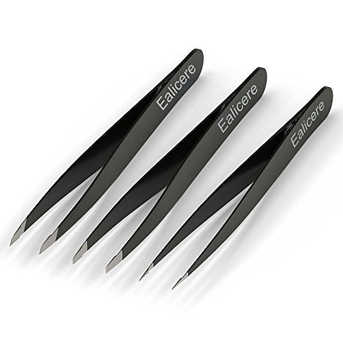 3 Pinzette per Sopracciglia, Acciaio Inossidabile, Oblique Appuntite Piattee Punta, Professionali per Peli Incarniti, Depilazione/Ceretta/Sfoltite Sopracciglia, peli del Naso e Schegge