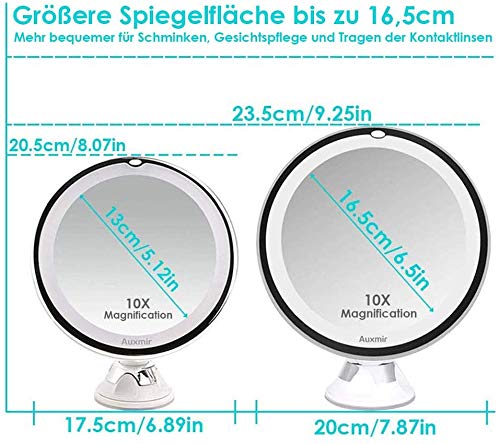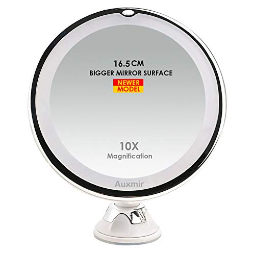 Auxmir Specchio Ingranditore 10X da 6,5 Pollici Specchio Trucco Illuminato LED Specchio a Ventosa 360° Girevole Portabile Luce Naturale Senza Fili Ideale per Casa e Viaggi