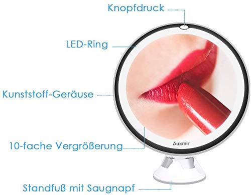 - ★ LUCE LED: Lo specchio da trucco di Auxmir è stato dotato di una luce a 20 LED circolare lungo il bordo che può essere regolata tramite il pulsante a tocco per avere l’effetto dell’illuminazione a giorno o serale.