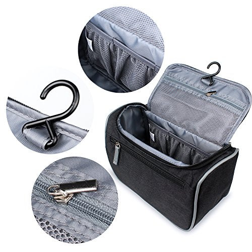 Colore:Nero[ Migliorie ] A causa della scarsa esperienza degli utenti precedenti, le nostre nuove borse da toilette sono state realizzate con cerniere di alta qualità che hanno superato la nostra fabbrica di test di apertura e chiusura di 100.000 volte. Nessuna preoccupazione per le cerniere rotte. [ Design Pratico ] I nostri dopp kit portatili sono realizzati in resistente tessuto impermeabile esterno in caso di acqua, e una grande capacità interna per organizzare i vostri articoli da toeletta per le vostre attività indoor o outdoor. Inoltre, i bordi della borsa da toilette sono realizzati in robusta pelle per rinforzare e tenere bene i tuoi articoli da toeletta. [ Portatile e Comoda ] La borsa cosmetica in una dimensione compatta ti fa risparmiare spazio nel bagaglio per un trasporto facile e il gancio incorporato consente di essere appeso comodamente in bagno, sul portasciugamani o dovunque tu voglia vedere e accedere facilmente ai tuoi articoli organizzati. [ Pacchetti di Regalo ] 2 pacchetti di regalo forniti nella confezione – appendiabiti portatili, colore a caso, che possono essere piegati e adattarsi in piccole tasche, molto comodo da portare durante il viaggio, escursione, campeggio o anche a casa.