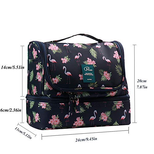 - Disegno a doppio strato - La tasca inferiore è progettata con banda elastica intrecciata per memorizzare le bottiglie del lavaggio del corpo o dello shampoo; Il vano principale superiore è ampia e dispone di ampio spazio per adattarsi a tutti i tuoi cosmetici, make up, accessori da barba, spazzolino da denti e dentifricio, prodotti igienici femminili - o le cose del tuo partner!