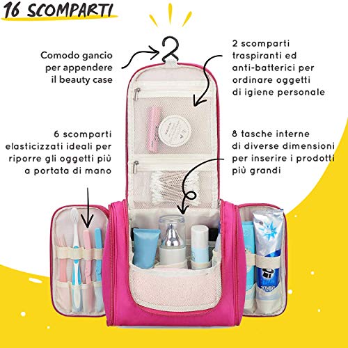 Beauty Case da Viaggio Uomo Donna 16 Scomparti Borsa Da Toilette Grande Rosa