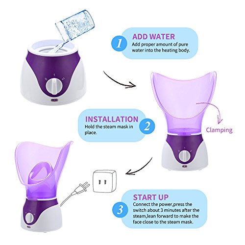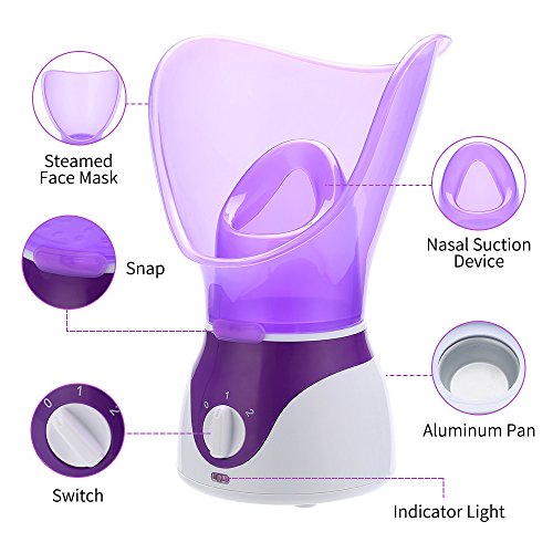 • 【Idratante per la pelle】vaporizzatore per il viso completo per cura intensiva della pelle e attacco per inalazione per inalazione di naso e bocca per eliminare il naso ostruito, funzione umidificatore , Utilizzato su tipi di pelle normale, grassa, secca, mista e sensibile - Rende la pelle la pelle neutra ideale: tenera, scioglie le cellule morte della pelle, produce toner. crema e altri nutrienti assorbibili.