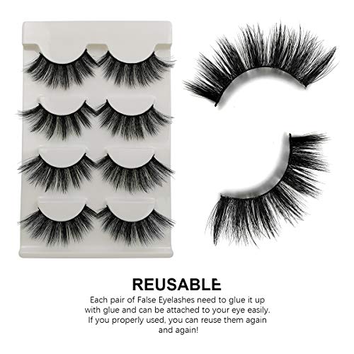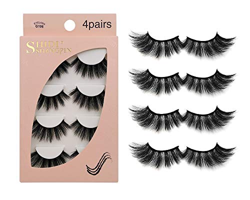 Ciglia finte 4 paia - Riutilizzabile professionale Ciglia Misura per tutti gli occhi, Naturale spessa fatto a mano Ciglia finte visone 3D per un bellissimo trucco G106
