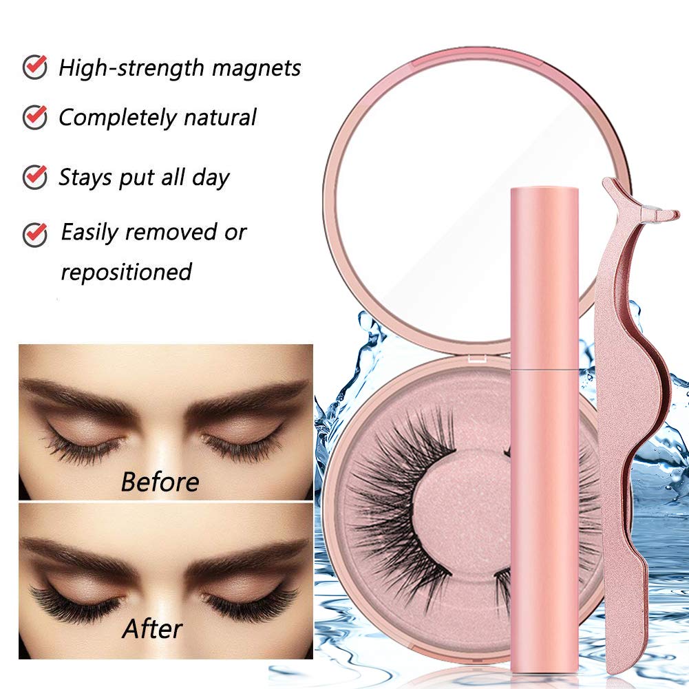 Ciglia Magnetiche con Eyeliner Magnetico, Eyeliner magnetico, Ciglia Magnetiche, Impermeabile Liquido Eye Liner Pen Magnetico, Reusable 3D Naturali Ciglia Finte Magnetiche + pinzette