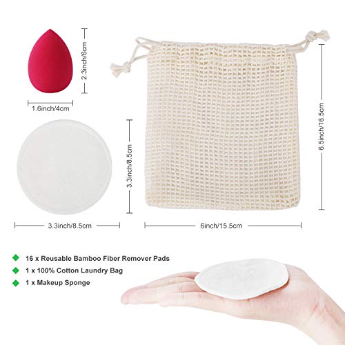 - Pacchetto dall'ottimo rapporto qualità-prezzo: ✔ I cuscinetti rimovibili contengono 16 pezzi di spugne in spugna di bambù, 1 sacchetto per il bucato in rete e 1 spugna per il trucco.