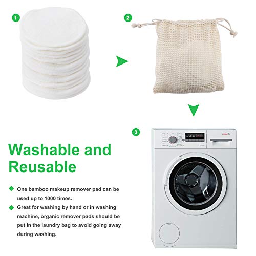 - Meno sprechi ed ecologico: ✔ I dischetti struccanti organici possono essere utilizzati più volte. È appropriato per il lavaggio in lavatrice e per il lavaggio a mano, i tamponi di pulizia rotondi devono essere inseriti nel sacchetto della biancheria per evitare di andare via durante il lavaggio.