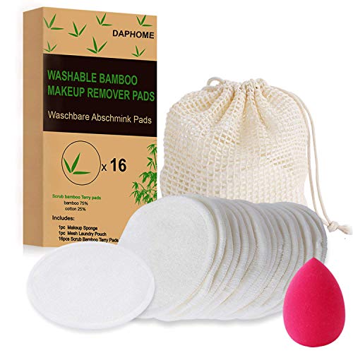 DAPHOME Dischetti Struccanti Lavabili in Bambù Dischetti Struccanti Riutilizzabili Salviette Struccanti in Fibra di Bambù 16 pezzi+1 Borsa per bucato di Cotone +1 Spugnetta per trucco