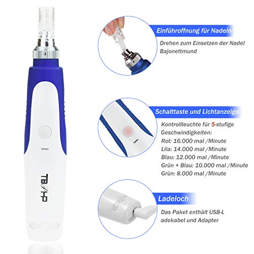 Dispone di dodici aghi: - cinque diverse velocità; - facile da usare su piccole aree; - più rapido ed efficiente; - lunghezza regolabile dei micro aghi (da 0,25 a 2,5 mm); - veloce movimento verticale per ridurre al minimo il dolore; nessuna infezione grazie agli aghi monouso. Funzioni: - rimozione delle rughe, dell'acne, miglioramento delle cicatrici, effetto ringiovanente; - area di trattamento concentrata (per glabella, rughe, cicatrici e in profondità); - restringe i pori; trattamento delle smagliature; lifting; migliora rughe e zampe di gallina; trattamento delle cicatrici dell'acne e cura delle ferite. Attenzione: per motivi di sicurezza, utilizzare solo un rullo per persona. Non spingere con forza il rullo sulla pelle, ma applicare una lieve pressione. Utilizzare il rullo obliquamente applicando la stessa intensità sulle stesse aree in verticale e in orizzontale. Applicare i protocolli MTS in base alle esigenze dei clienti. Dopo il trattamento, applicare una soluzione post-trattamento per proteggere la pelle. Per questioni di sicurezza, leggere il manuale [lingua italiana non garantita] con attenzione prima di utilizzare il rullo. La confezione include: 1 x dermapen e 2 aghi da 12 pin. 1 x adattatore di corrente. 1 x manuale utente in Italia