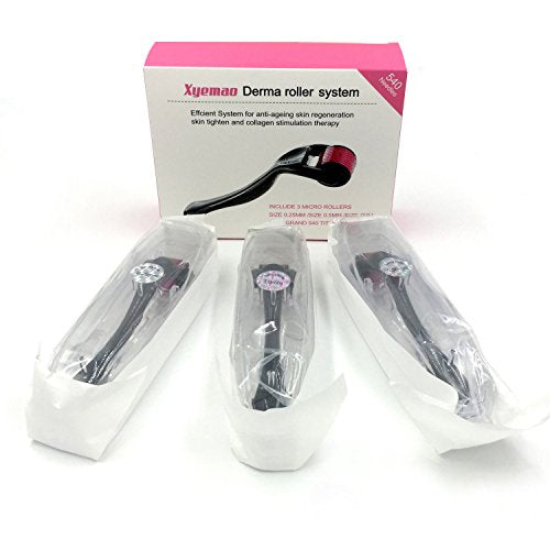 Derma roller, Xyemao New 540 Titanium micro Needles – 3 Pack (0.25 mm/0.5 mm/1 MM), approvato dalla FDA per uso domestico a rullini cura della pelle del viso e beauty Massage Tools