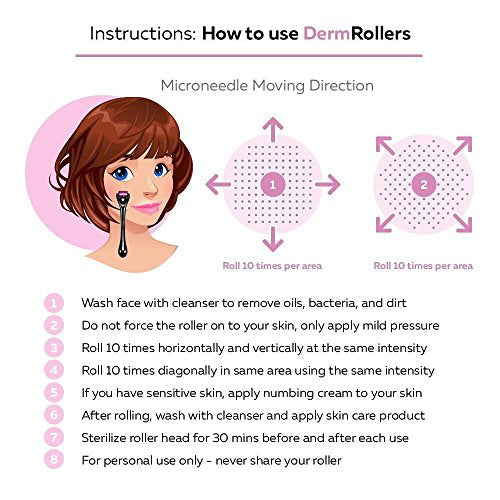 - [SICURO E FACILE DA USARE] - Basta disinfettare prima di qualsiasi utilizzo e rotolare verticalmente, orizzontalmente e in diagonale sull'area di trattamento circa 4 - 5 volte ciascuna prima di applicare il prodotto per la pelle topica preferito. Poiché i micro aghi sono così piccoli, il processo di laminazione è indolore e facile