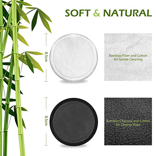 • ♻ Adatto a Qualsiasi Pelle: materiale morbido e piacevole, ideale per tutti i tipi di pelle, anche per pelli sensibili e impure, per viso, occhi, labbra e collo. 11 pezzi nero dischetti struccanti in carbone di bambù sono perfetti per le aree delicate come la zona degli occhi, 11 pezzi bianco dischetti struccanti in fibre di bambù sono perfetti per la pulizia della pelle esfoliando delicatamente la pelle.