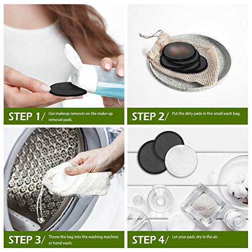 • ♻ Detergente per Carbone di Bambù: questi fibra di bambù e cuscinetti in carbone di bambù rimuovono delicatamente e con successo trucco, prodotti chimici, creme solari e cosmetici senza disagio. Il materiale in carbone di bambù rende dischetti struccanti riutilizzabili assorbente perfetto per il trucco e l'idratazione e un detergente più pulito rispetto ai dischetti struccanti usa e getta.