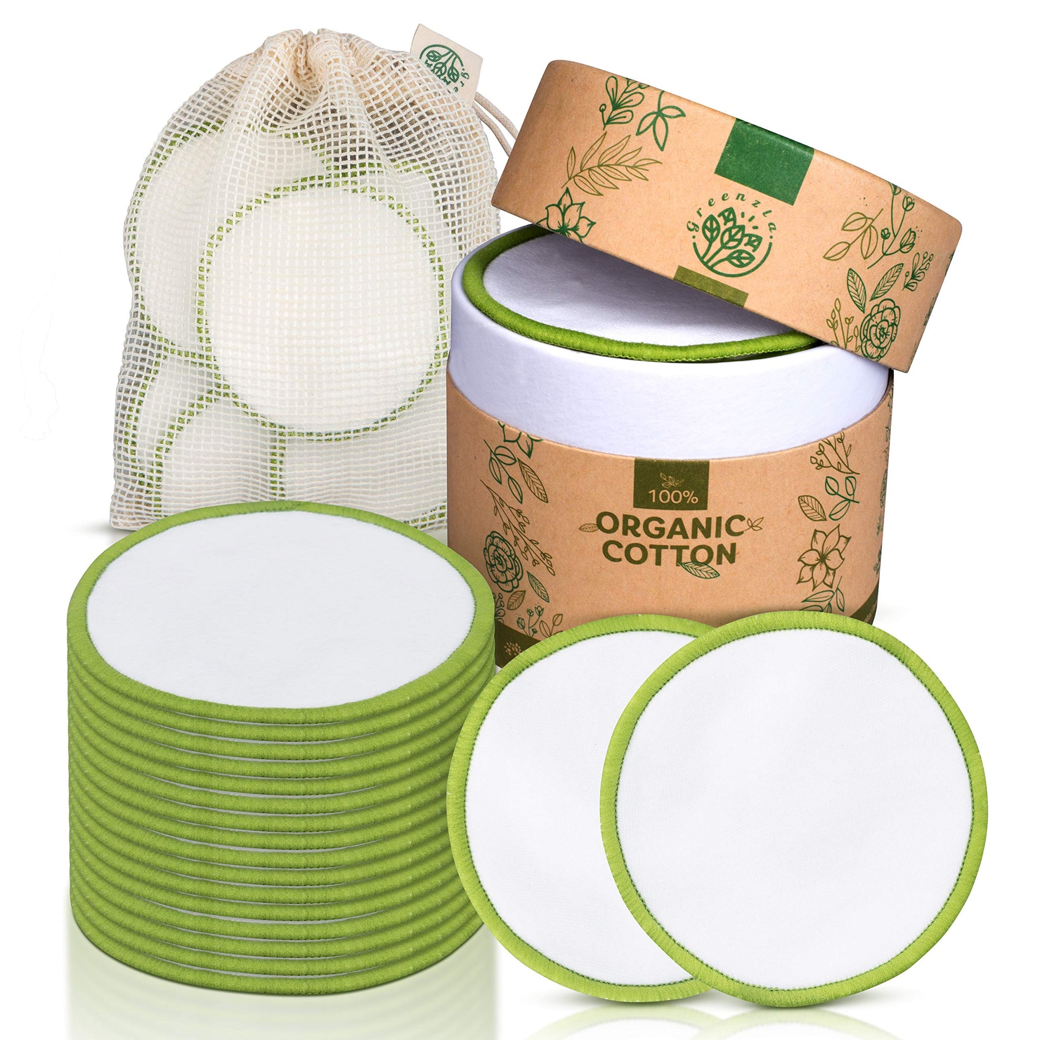 Dischetti struccanti lavabili Greenzla (pacco da 20) con sacchetto per il lavaggio e scatola rotonda di stoccaggio | tamponi riutilizzabili al 100% in cotone organico di bambù per ogni tipo di pelle