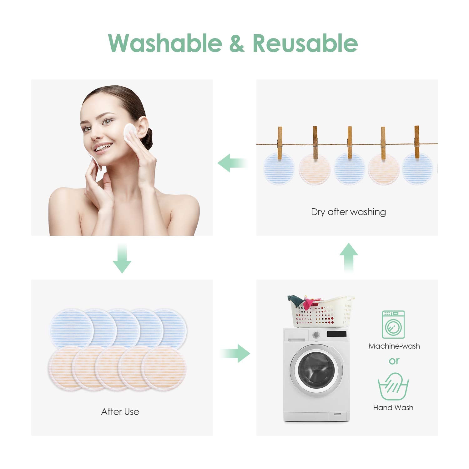 • 【Funzioni multiple】I dischetti struccanti lavabili sono per la pulizia del viso, ombretti, mascara, rossetto, esfolia delicatamente. E 'compatibile con tutti i tipi di prodotti cosmetici: lozione detergente o olio essenziale, acqua micellare, tonico e crema. Questo è davvero uno strumento essenziale la vostra routine quotidiana di cura della pelle! Può anche essere usato per pulire gli occhi, il viso e il naso del bambino.