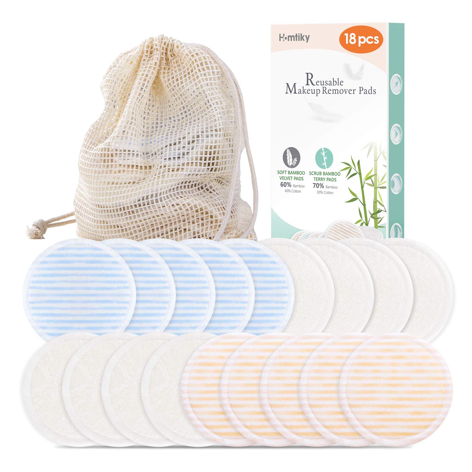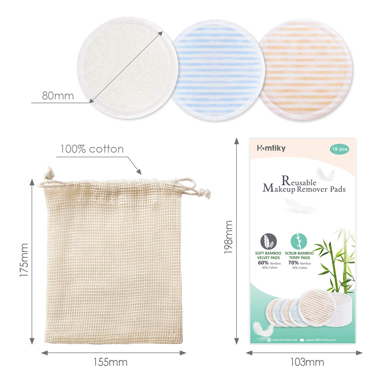 Dischetti Struccanti Lavabili, Homtiky Dischetti Struccanti Riutilizzabili 18 Pezzi in Velluto e Fibra di Bambù, Cuscinetti per Struccare, Super Morbide, Lavabili, per la Pulizia Tutti i Tipi di Pelle