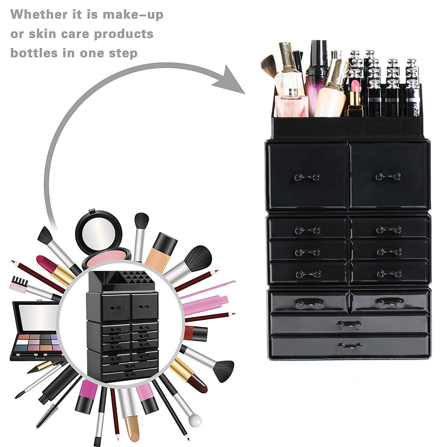 DISPLAY4TOP DAWOO 12 cassetti acrilico organizer per cosmetici 12 cassettiere Nero