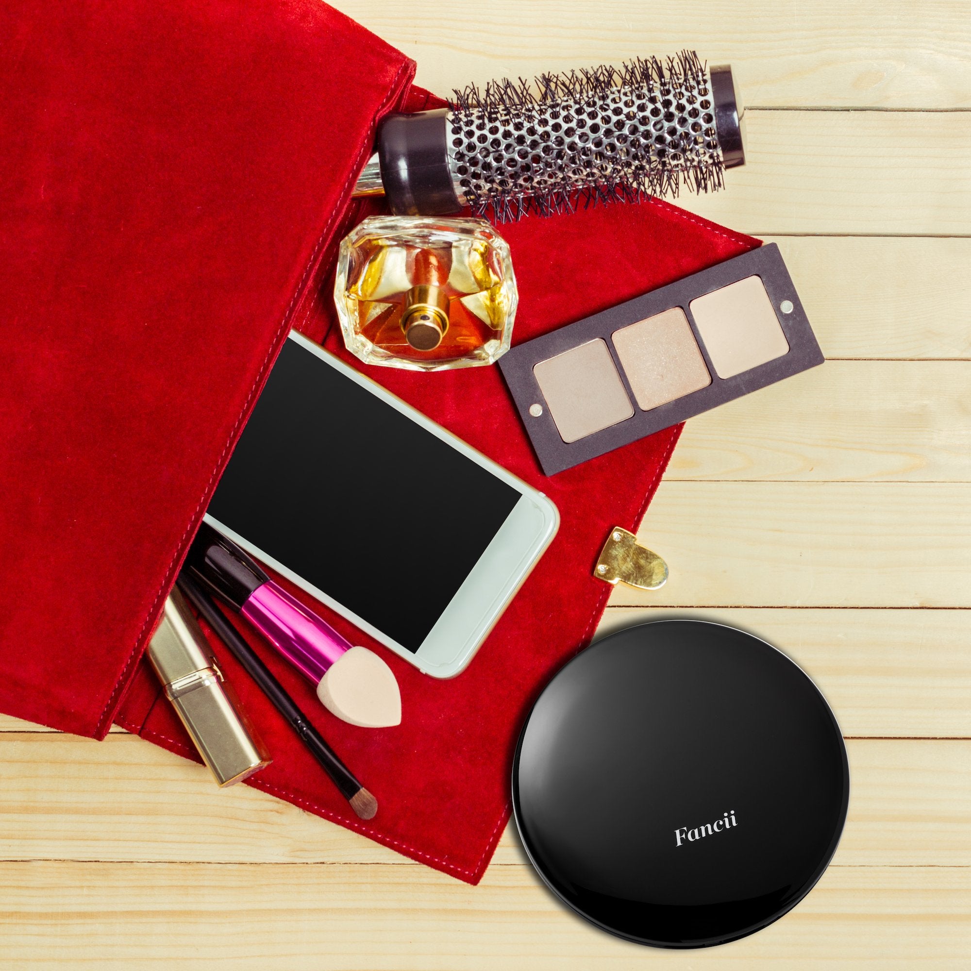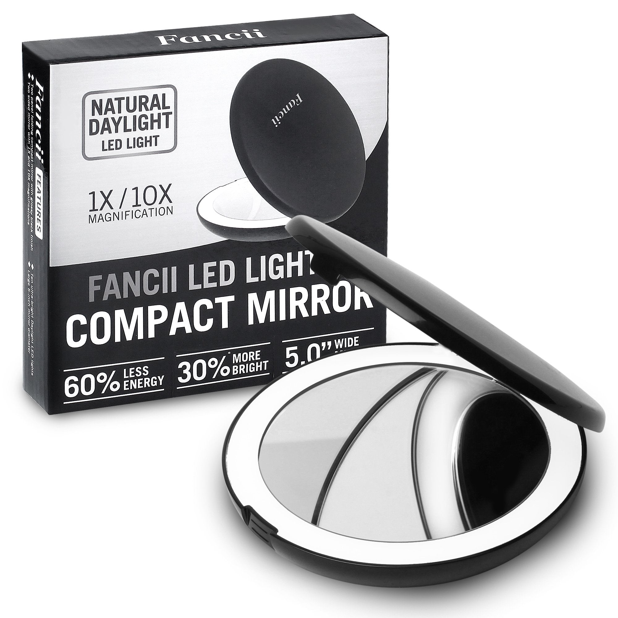 Fancii Specchio Ingranditore Tascabile Illuminato per Trucco, Normale e Nero