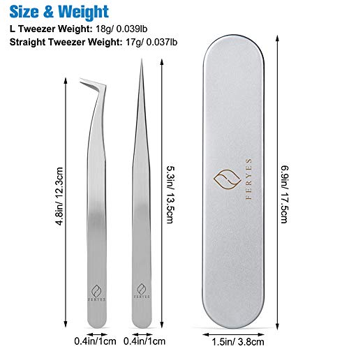 FERYES Pinza a Punta Dritta e Pinza a Punta Curva per Extension Ciglia con Volume 3D 6D,Pinzette Professionali in Acciaio Inox 2pz. Adatte per le Extentions Ciglia 3D 6D Volume Mink Eyelash Extensions