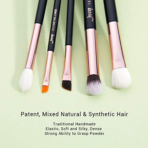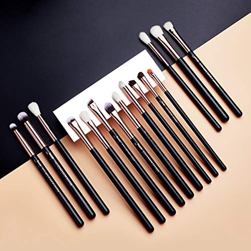Jessup 15Pz Pennelli Trucco Professionale Set Occhi Trucco Pennello Ombretto Sfumature Manico in Legno Setole sintetiche-naturali Nero/Oro rosa T157