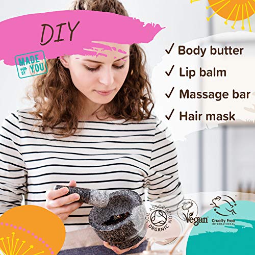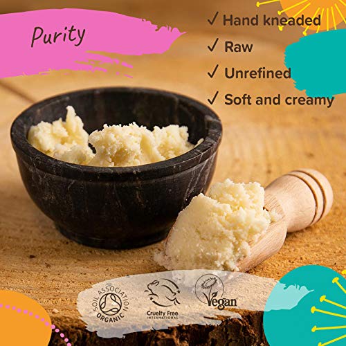 - Burro di Karitè non raffinato e puro al 100% dal Ghana, certificato biologico dalla Soil Association. Acquistiamo il nostro burro di Karitè da una cooperativa di donne fondata da Georgina Koomson, basata a Wa, nel Ghana del nord. Questo gruppo di oltre 600 donne supporta la comunità locale che conta oltre 2400 persone e li sta aiutando a costruire un futuro migliore tramite la produzione di burro di Karitè biologico.