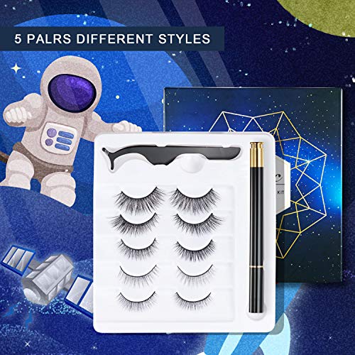 ONLYOILY Eyeliner & Kit ciglia, Ciglia finte 3D in finta ciglia riutilizzabili lunghe e spesse, 5 paia Ciglia finte drammatiche con clip per ciglia