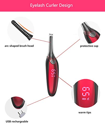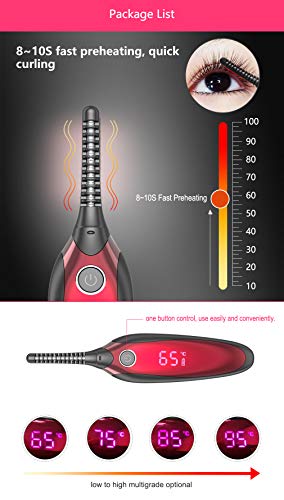 Piegaciglia Elettrico USB Ricaricabile,Professionale Piega Ciglia Elettrico con Display 4 Temperature Digitale LCD per Effetto Ciglia Ricurve Strumento