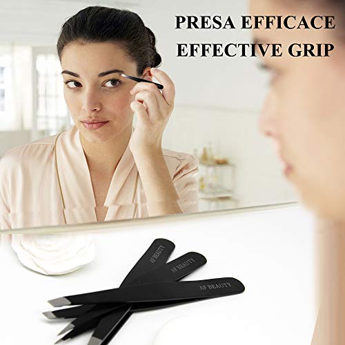 Colore:NeroAFBEAUTY SET DI PINZETTE PREMIUM : Il set professionale di pinzette per sopracciglia AFBeauty garantisce un eccellente presa su tutti i tipi di peli bagnati, corti e sottili.Le punte in acciaio inossidabile di alta qualità consentono la rimozione precisa di sopracciglia e peli del viso senza lasciare cicatrici su qualsiasi tipo di pelleASTUCCIO ELEGANTE E COMODOil nostro astuccio è perfetto per proteggere le pinzette da qualsiasi tipo di condizione o sporcizia inoltre ci permette di averle sempre con noi senza doverci preoccupare di niente, realizzato in materiale simil-pelle.TIPI DI PUNTEPUNTA DRITTA=è l'ideale per peli spessi e duri. Raggiunge facilmente la radice ed afferra il pelo senza spezzarlo a metà. Ottima inoltre per l'applicazione delle ciglia, strass per unghie e altro.PUNTA OBLIQUA=questo tipo di punte ricurve sono perfette per il raggiungimento di peli sottili in qualsiasi parte del corpo,perfette per la rimozione di spine e per la rimozione delle extension alle propie sopraccigliaPUNTA APPUNTITA=la punta più precisa delle 3 offre una perfetta soluzione a tutti coloro che hanno problemi con punti neri e peli incarniti e inoltre sono indispensabili per l'applicazione delle propie ciglia mangeticheSUGGERIMENTI✔️Per risultati ottimali, le sopracciglia devono essere strappate dopo la doccia✔️Tirare i peli nella direzione della crescita degli stessi.✔️Cercare di effettuare movimenti rapidi e veloci.✔️Se sei sensibile al dolore, ghiaccia l'area interessata dopo aver rimosso tutti i peliIMPORTANTE:dopo ogni uso pulisci le pinzette con un detergente antisettico per evitare irritazioni sulla pelle.