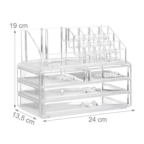 Relaxdays 10023130_50 Organizzatore Make-Up con 4 Cassetti, Trasparente