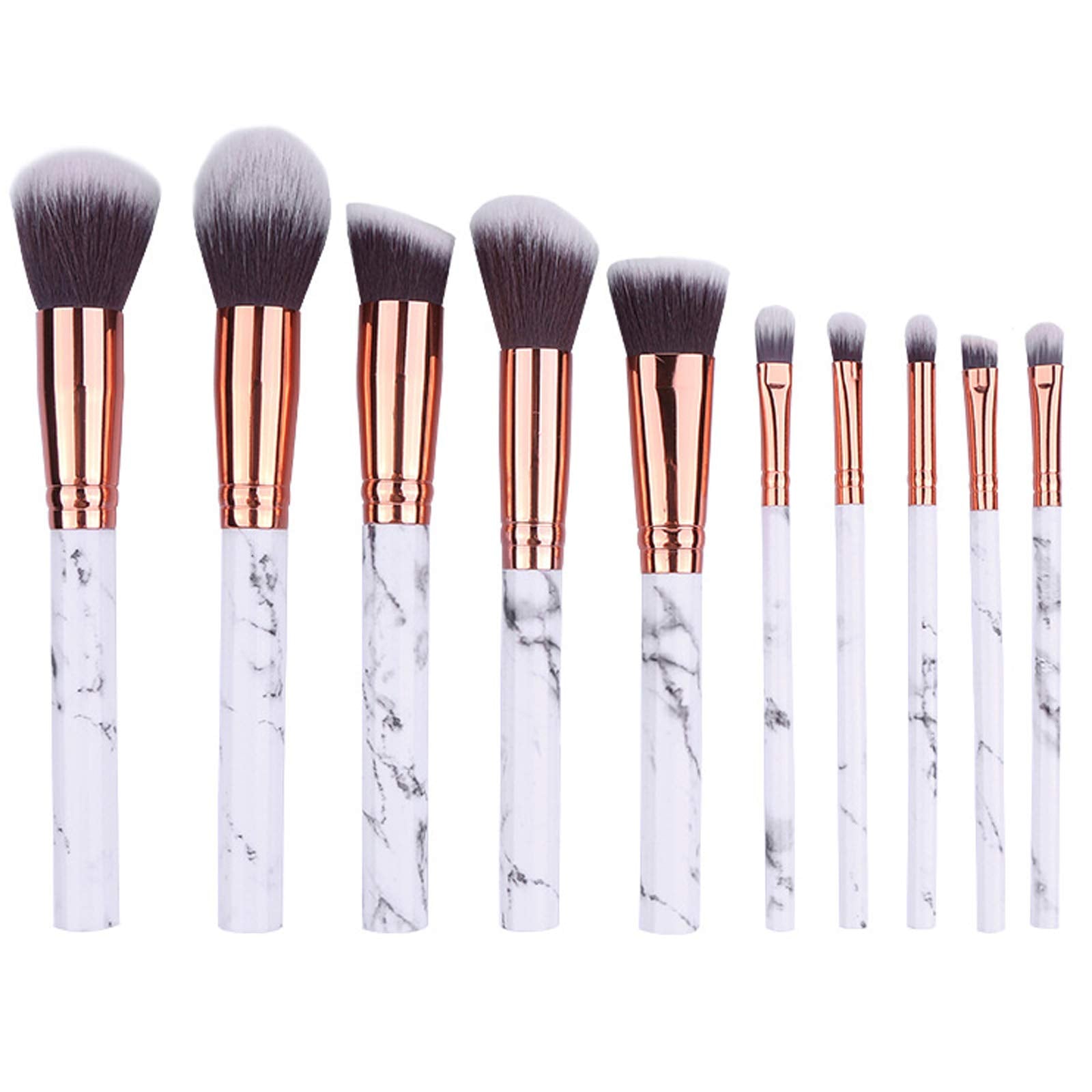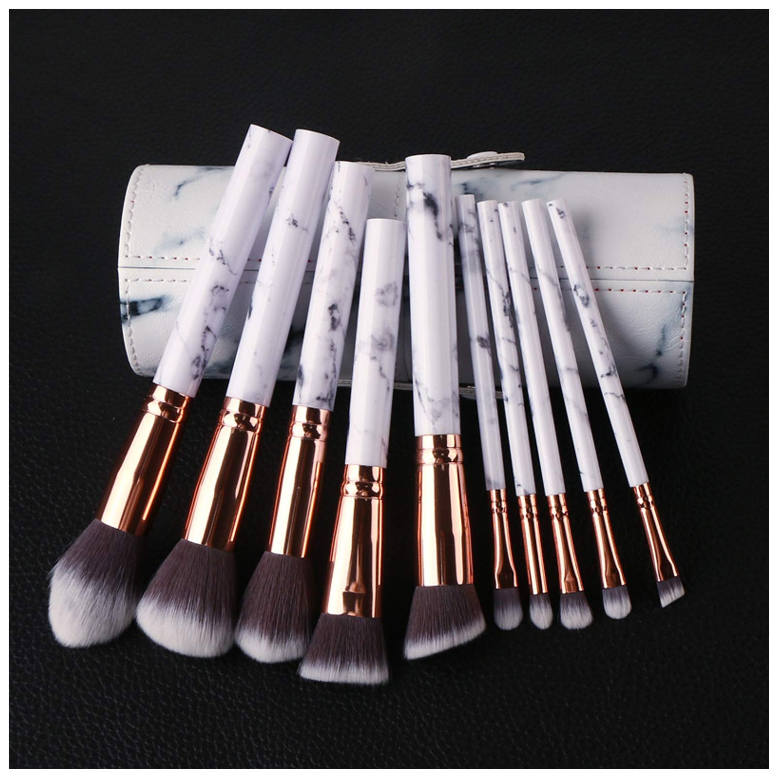 Ruesious 10PCS pennelli da trucco con marmo marmo, porta spazzolino, per cipria in polvere, Contour, paralume, evidenziatore, ombretto e fondotinta