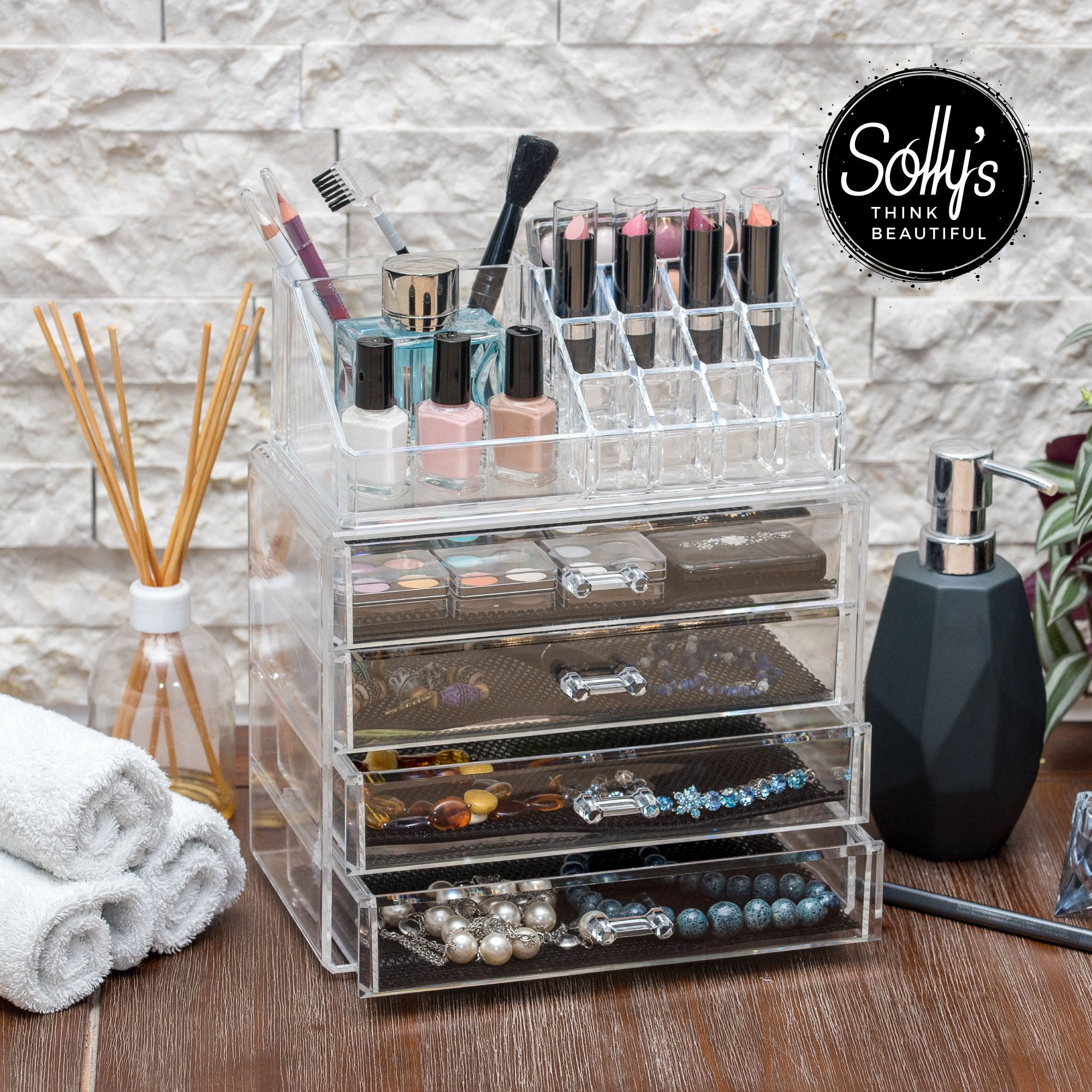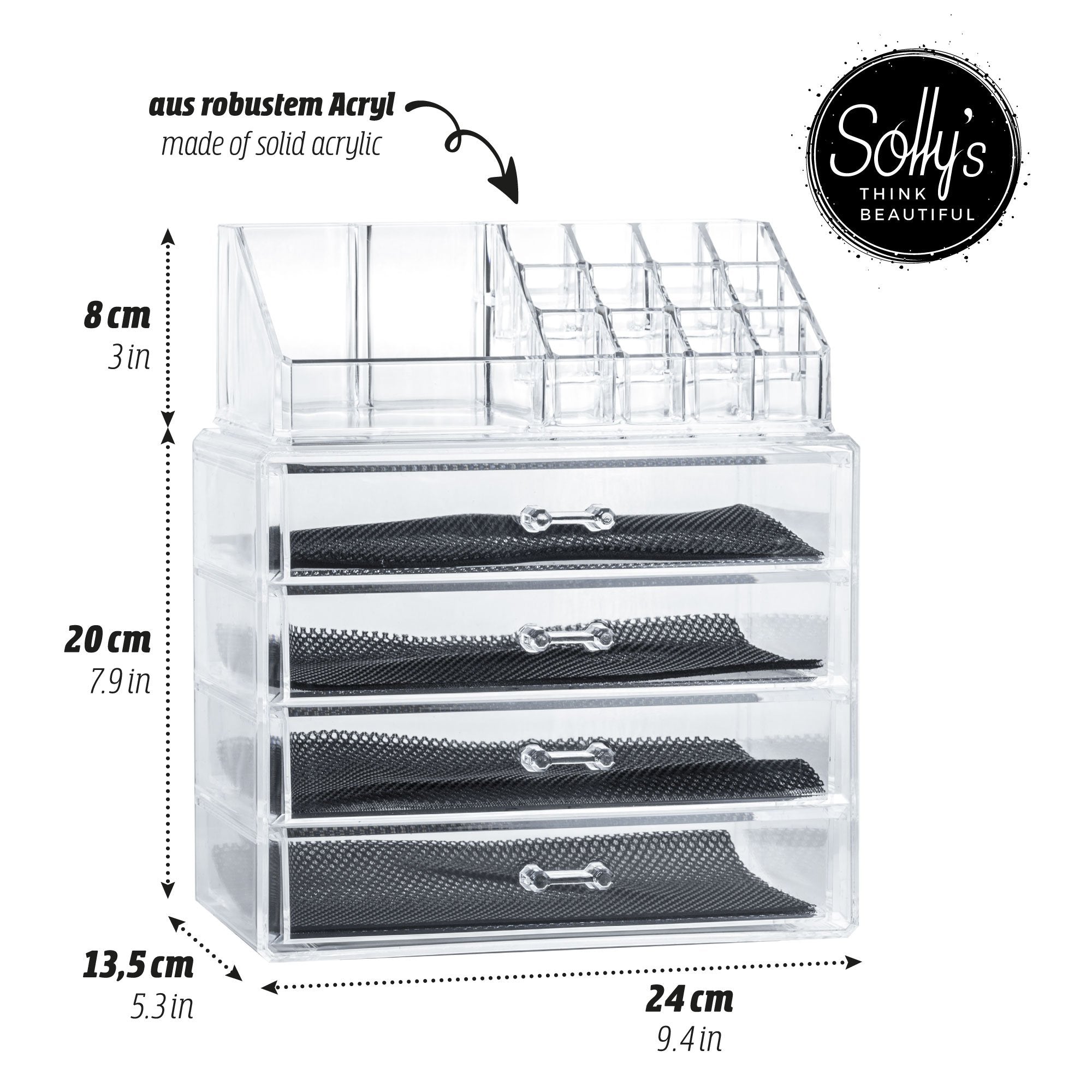 SollyŽs Lena - Organizer per Trucchi e Gioielli Trasparente, 4 Cassetti