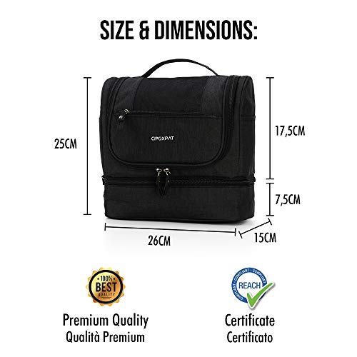 - ✅GRANDE CAPIENZA- Grazie alle misure XXL, nella parte superiore, potrai riporre anche flaconi grandi come shampoo e bagno schiuma, evitando così di riporli in orizzontale rischiando una fastidiosa fuoriuscita di liquidi. Nella vano inferiore imbottito potrai riporre creme in vasetto, palette di ombretto e tutti i prodotti delicati, ciò ti permetterà di proteggerli da eventuali urti.