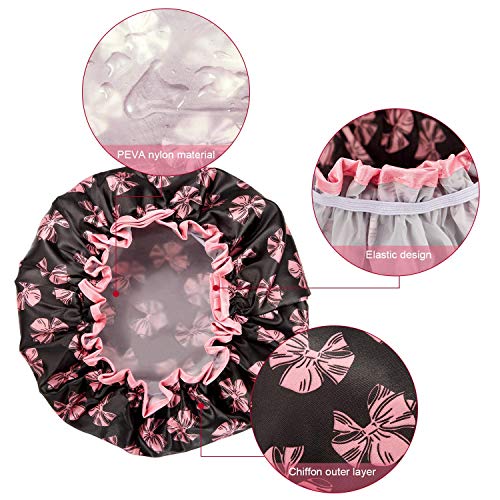ZARRS Cuffia Doccia Riutilizzabile,2 Pack Impermeabile Pink+wave Point