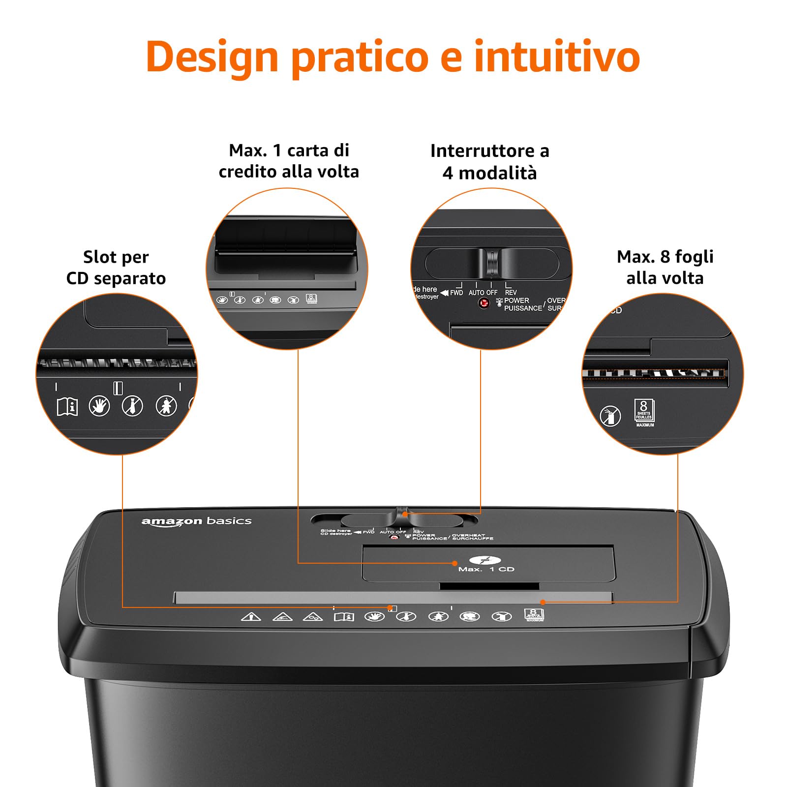 - Qualità testata: Come parte delle ispezioni sulla qualità di Amazon Basics, testiamo ogni distruggidocumenti prima della spedizione. Ciò significa che potresti trovare alcuni residui di carta del test