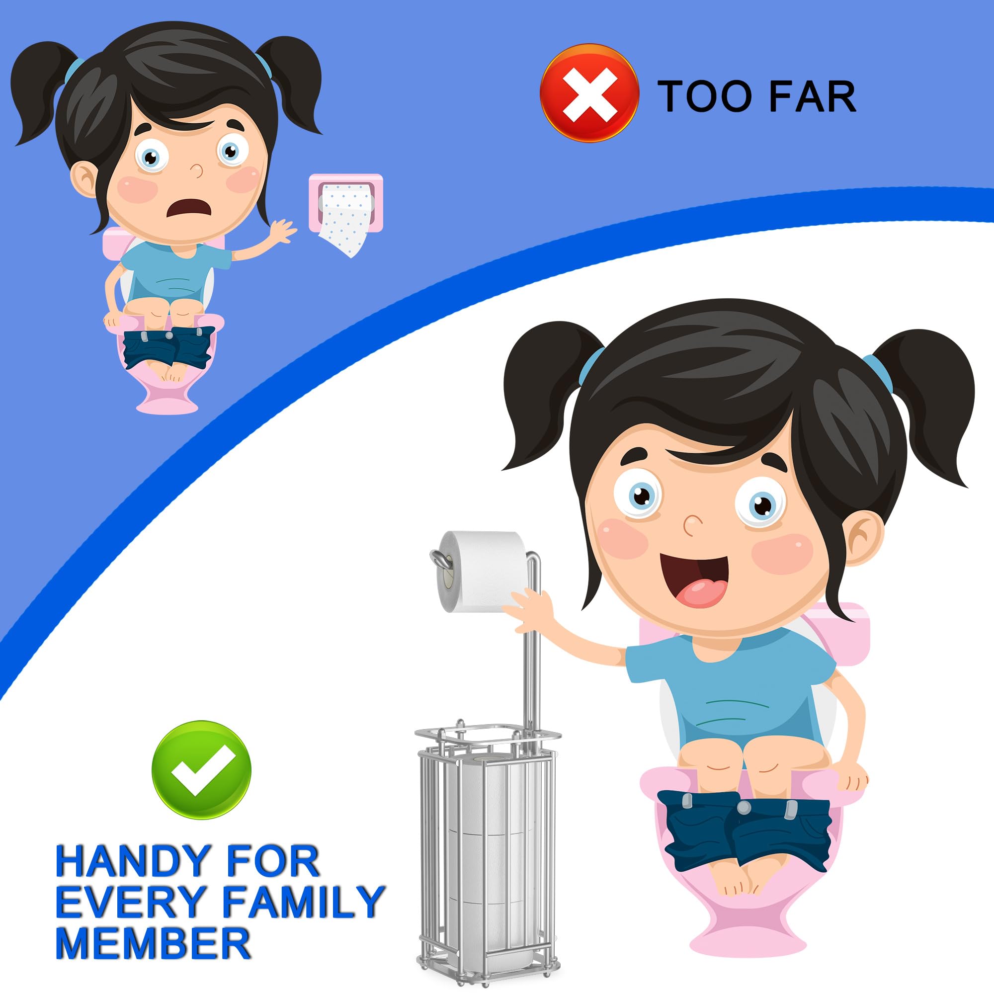 - [Piantana Portarotolo] Questo supporto per carta igienica a piantana è salvaspazio e mobile, può essere posizionato in qualsiasi angolo del bagno, della cucina o del soggiorno. Ti tiene a portata di mano.