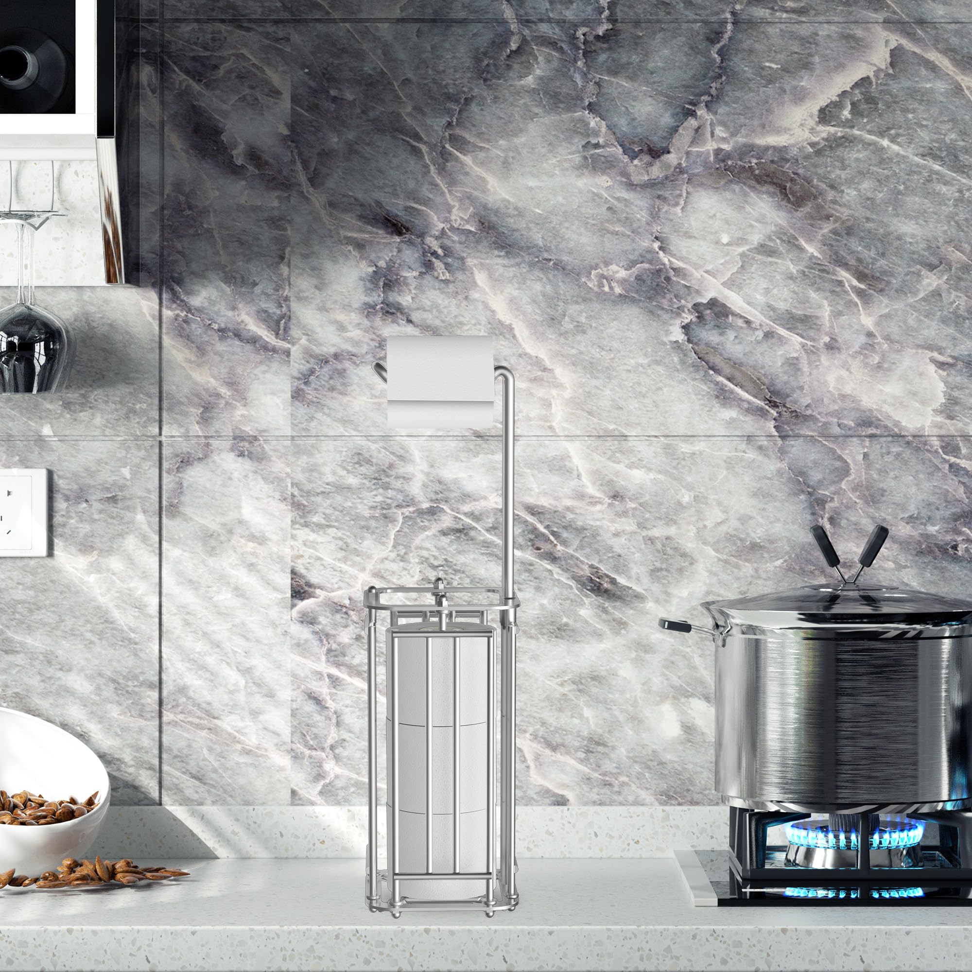 - [4 rotoli] Porta rotolo di carta singolo, con torre di stoccaggio che può contenere fino a 4 rotoli di carta igienica di riserva per le emergenze, in quanto è possibile rifornire facilmente l'asta di stoccaggio con nuovi rotoli regolarmente.