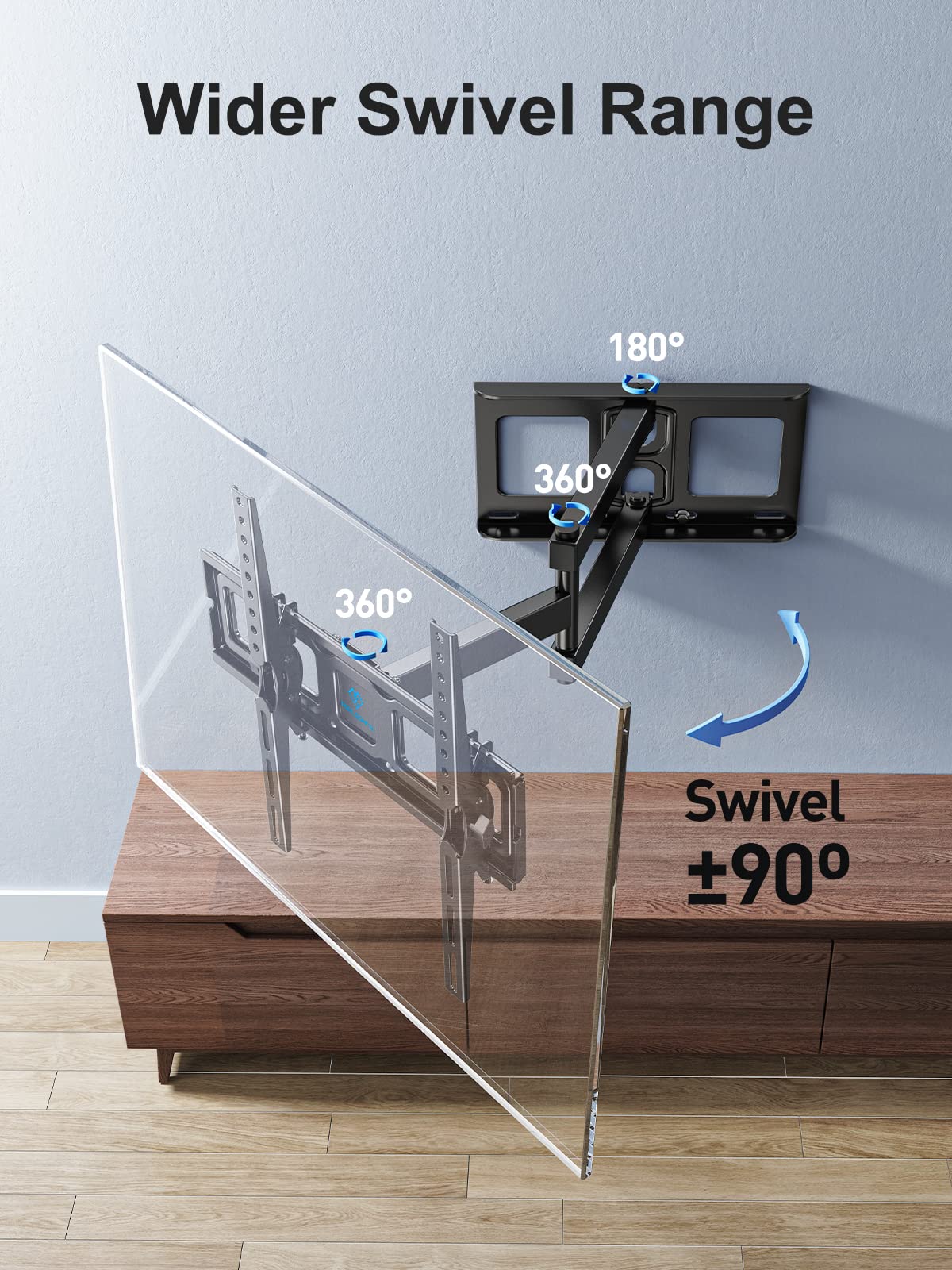 - BRACCIO ESTENSIBILE SALVASPAZIO - Il nostro braccio tv si ritrae senza sforzo a soli 85 mm dalla parete quando non viene utilizzato e può estendersi fino a ben 490 mm. Questo braccio tv 55 pollici offre ampi vantaggi in termini di risparmio di spazio e crea un aspetto elegante e ordinato nella vostra casa