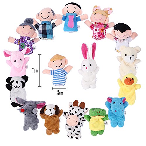 Pllieay 16 PIECES Finger marionette set è un buon giocattolo educativo, che sono grandi per l'immaginazione e lo sviluppo della creatività.Specifiche tecniche10 animali marionette dito: mucca, rana, coniglio, elefante, scoiattoli, Panda, anatra, ippopotamo, orso, cane.6 persone famiglia marionette dito: nonna, nonno, mamma, papà, fratello, sorella.Materiale: panno morbido durevole del velluto.Tutti i burattini animali con mani e piedi, piccoli e carini.Si può dire un sacco di storie sulle marionette dito animale per i vostri bambini e bambini.Pacchetto includono10 x marionette da dito animale6 x persone famiglia marionette dito