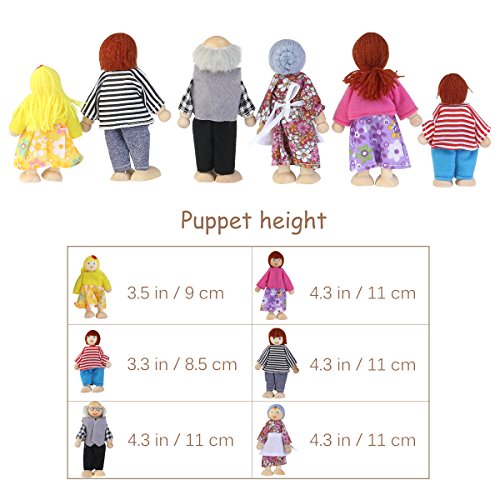 NUOLUX Burattino di legno NUOLUX giocattoli bambole famiglie, 6pcs (colore casuale)