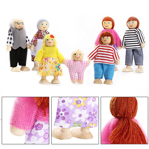 Playtee Felice Famiglia di Bambole Legno Set 7 Pupazzi Flessibili
