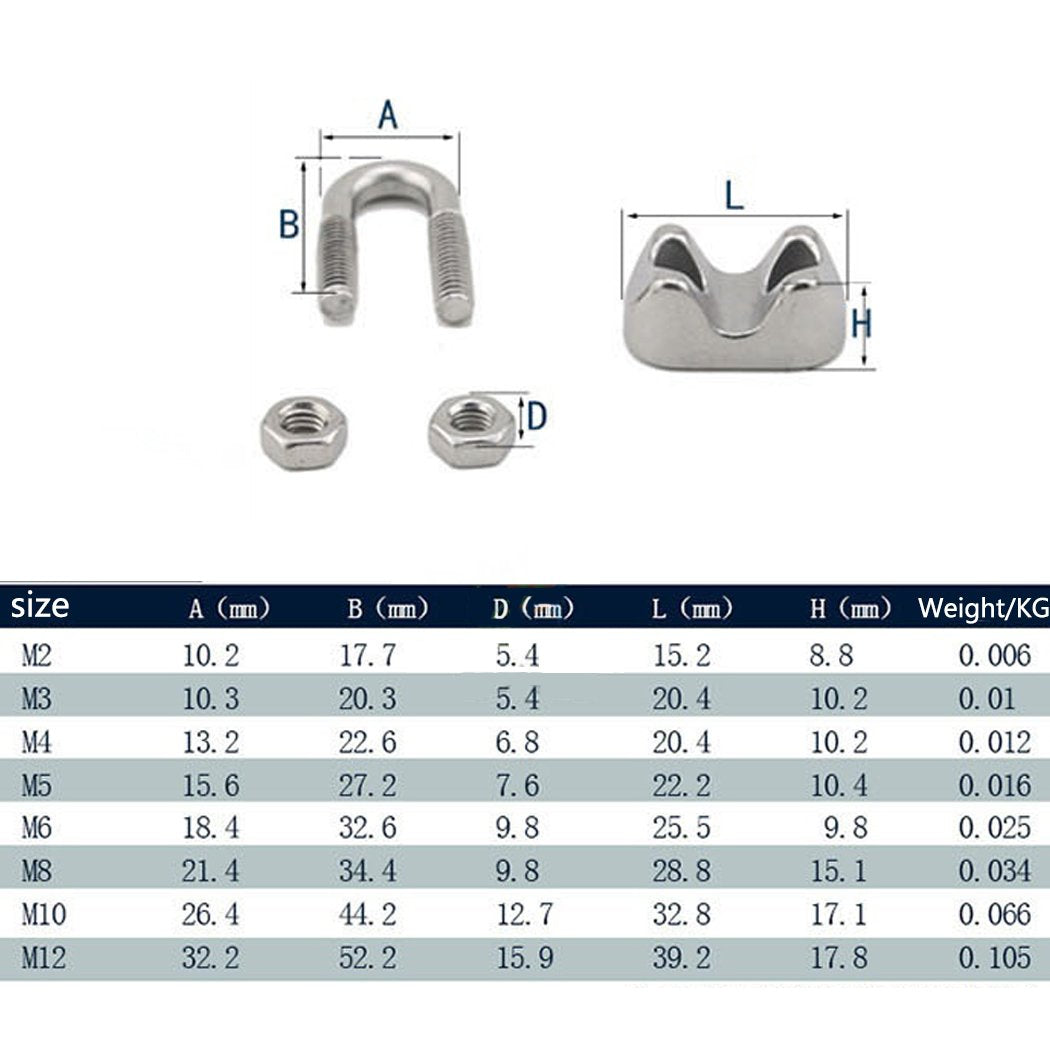 Fune metallica clip cavo morsetti in acciaio INOX 304, M3, 20 pezzi M3