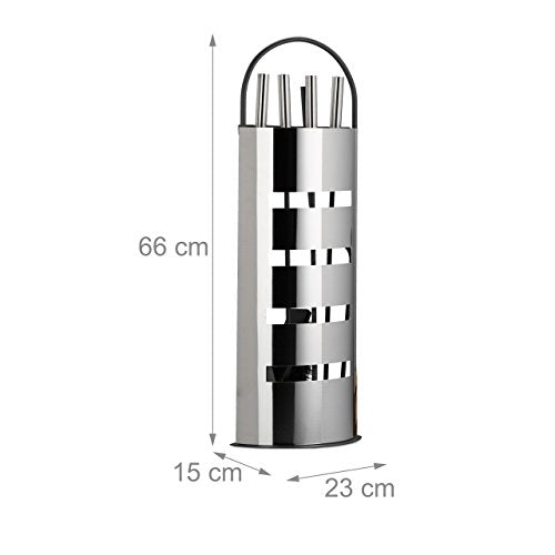 Relaxdays 10022290 Accessori Camino, 5 Pezzi, Moderno, Porta-Attrezzi, Paletta, Scopetta, Pinza, Attizzatoio, Grigio-Argento, Acciaio