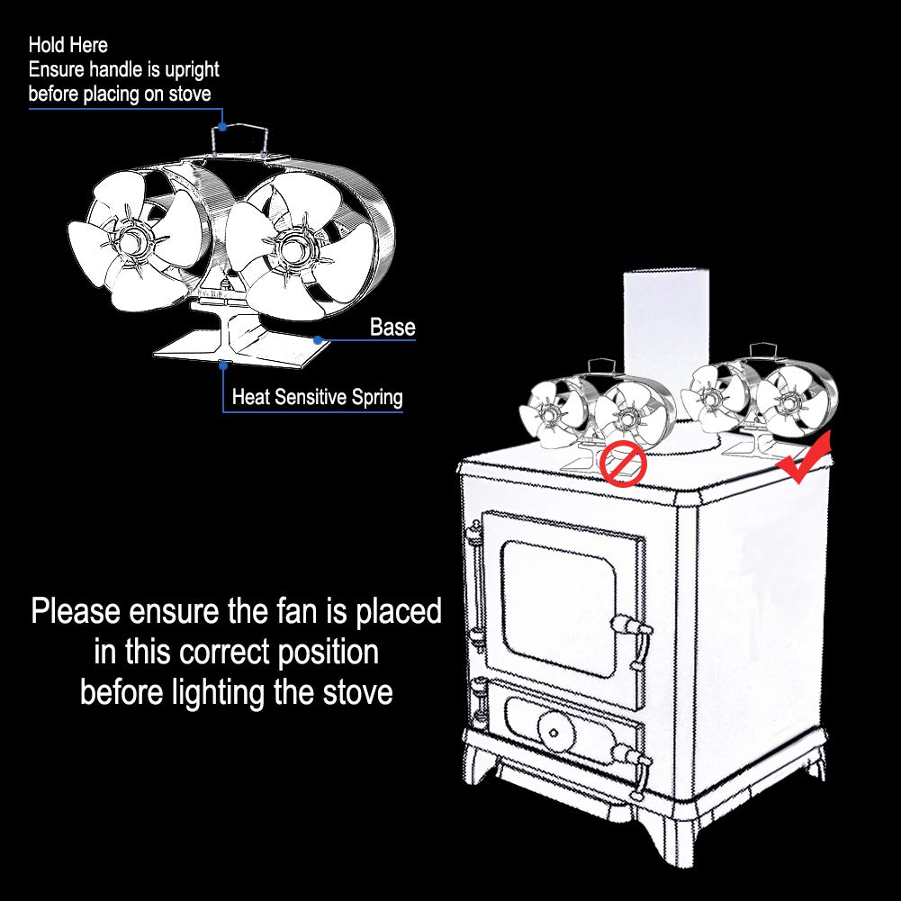2. Si prega di assicurarsi che la ventola sia posizionata in questo corretto positivo prima di accendere la stufa.