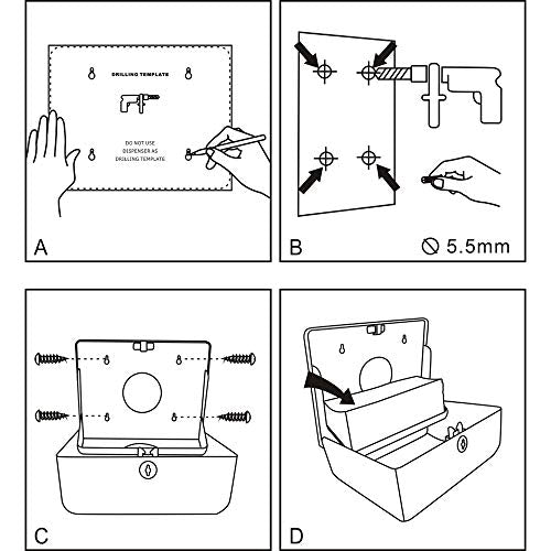 - Design di chiusura, dotato di una chiave, che è adatto per luoghi pubblici. Distributore di asciugamani di carta montato a muro che funziona bene per mantenere la superficie del contatore senza disordine.