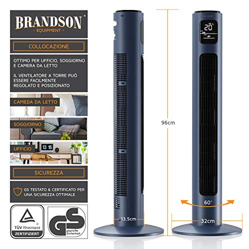 - ✓ MODELLO: Brandson Ventilatore a torre con telecomando IR | ideale per l'uso in casa (soggiorno, camera da letto ecc.) o in ufficio (Home Office), campeggio, camper, officina, garage ecc. | 303366 Blu Grafite